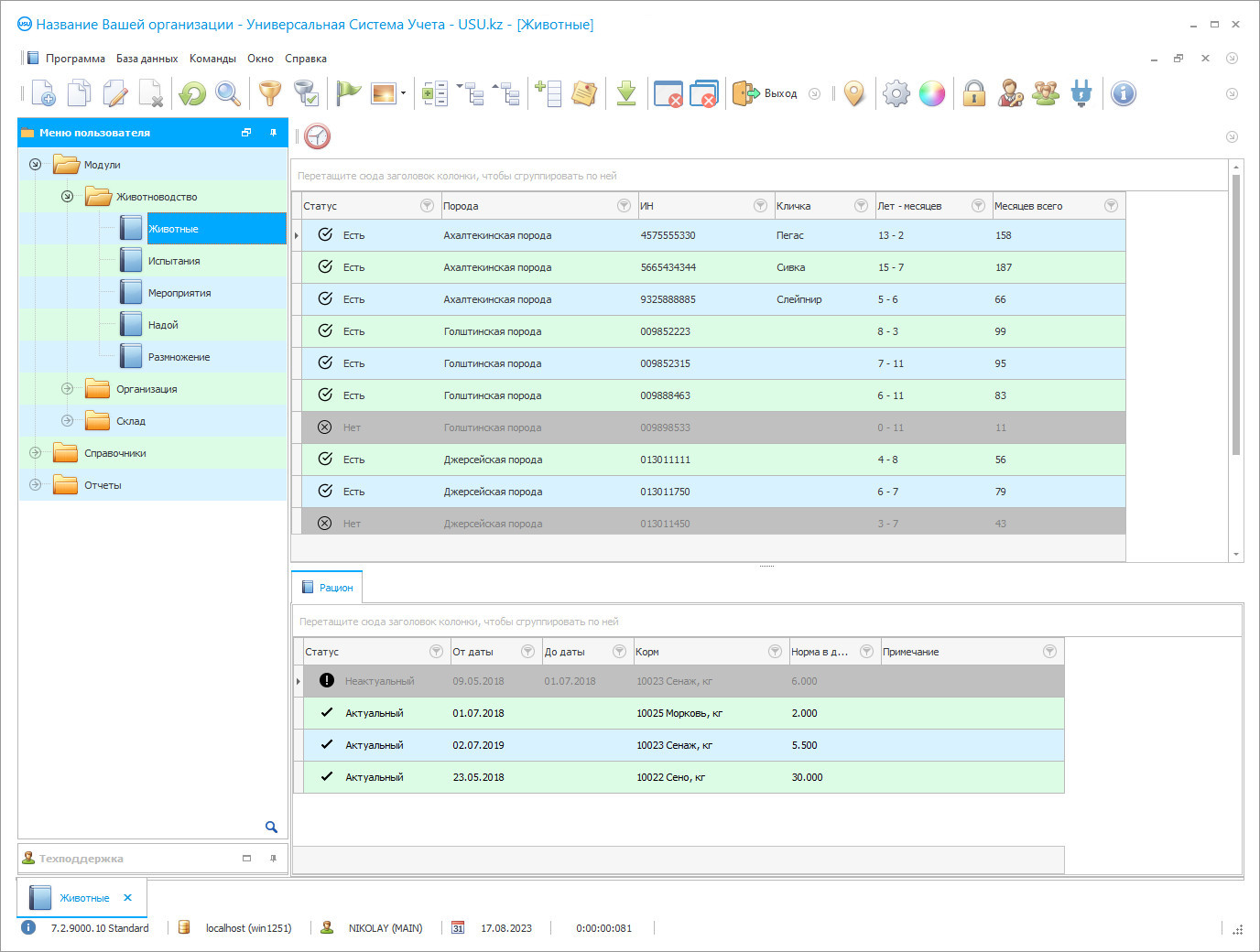 - Программа может использоваться сельскохозяйственными предприятиями любых размеров (от крупных комплексов мясного и молочного скотоводства до небольших пушных или коневодческих ферм), вне зависимости от поголовья скота и количества пород;