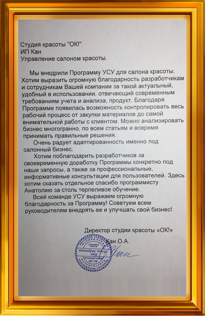Отзыв студии красоты «ОК!» об Универсальной Системе Учета