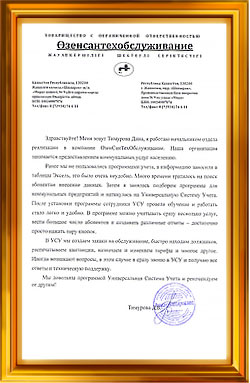 Отзыв ТОО «Озенсантехобслуживание» о программе управления предприятием УСУ