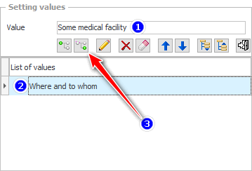 Now in the input field, let's write the name of any medical institution to which we can send the results of the research. Next, select the previously added item and press the next button ' Add to selected node '.