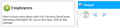 To use the help and improve your user skills, simply, as suggested in the message, click on the notification. The relevant help section will open immediately. For example about the guide Employees .