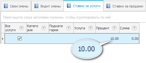 Затем снизу на вкладке "Ставки за услуги" можем указать процент за каждую оказываемую услугу.