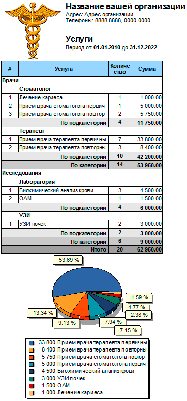 Если все услуги из вашего прайс-листа одинаково хорошо продаются, значит вы зарабатываете на всех услугах. Но такую идеальную ситуацию можно увидеть не во всех организациях. Поэтому над продвижением некоторых услуг приходится работать. Для начала необходимо понять популярность каждой предоставляемой процедуры. Определить услуги пользующиеся популярностью поможет отчет "Услуги".