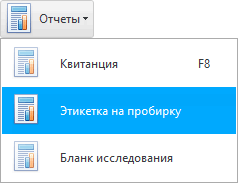Присвоенный номер пробирки можно легко распечатать в виде штрих-кода на принтере этикеток. Также там может быть отображена и другая важная информация о пациенте, если размер этикетки достаточно большой. Для этого сверху выберите внутренний отчет "Этикетка на пробирку".