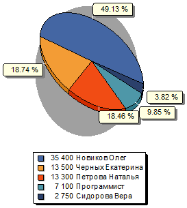 Особое внимание хотим обратить на диаграммы, которые имеются практически в каждом отчете. Они используются для наглядности. Подчас даже не будет необходимости вчитываться в табличную часть отчета. Можно будет просто взглянуть на заголовок отчета и на диаграмму, чтобы сразу понять положение вещей в вашей организации.