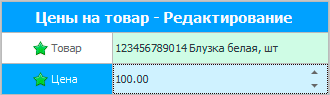 Каждый добавленный в номенклатуру товар, попал сюда автоматически. И теперь нам остается просто двойным щелчком заходить "в каждую строку", чтобы выставить продажную цену. По двойному щелчку будет открываться режим "редактирования записи".