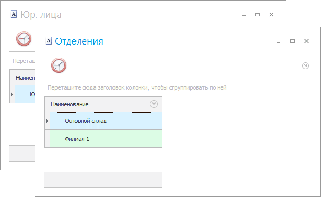 Они открываются отдельными окнами. Это называется "Многодокументальный интерфейс", который является наиболее продвинутым, так как можно поработать с одним окном, а потом легко переключиться на другое. Например, мы вошли в справочник "юридических лиц"