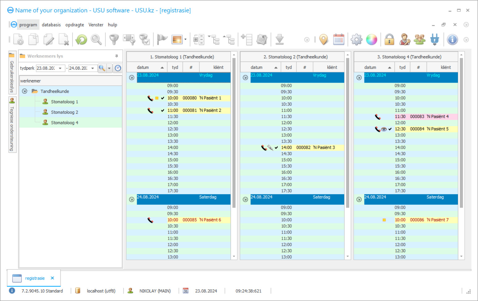 Die werklading van enige kliniek hang af van die werksure wat deur elke dokter toegeken word. Dit is belangrik om te onderskei tussen die kantoorure van die kliniek en die tyd wat die dokters volgens 'n skedule neem. By normale kliniese werklading is die gemiddelde skedule vir tandartse byvoorbeeld 148 uur. Om hierdie syfer vir u kliniek te bereken, kan u verskillende metodieke gebruik wat u aanlyn kan vind. Dit sal help om die maksimum produksiekapasiteit van u organisasie aan te dui. Wanneer u berekeninge doen, moet u data so na as moontlik aan die ideaal gebruik, eerder as om tot die huidige situasie beperk te word. Die USU-Soft kan hierdie inligting vir u versamel, asook baie ander take verrig.