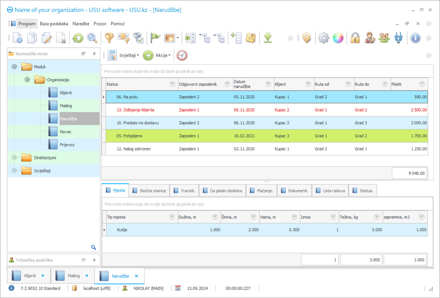 Otvorit će se pristup vašoj bazi podataka s kupcima, ispunjavajući sve potrebne podatke. Nakon izvršenja narudžbe možete obavijestiti svoje kupce slanjem poruka. Informacije će se na najbolji mogući način čuvati u posebnim referentnim knjigama za sav prijevoz i njegove vlasnike. Bit će uključeno nekoliko vrsta prijevoza, poput zračnog, željezničkog i pomorskog prijevoza robe. Konsolidacija tereta vršit će se u jednom smjeru. Sve narudžbe i uplate izvršene za prijevoz u svakom će trenutku biti pod vašom punom kontrolom.