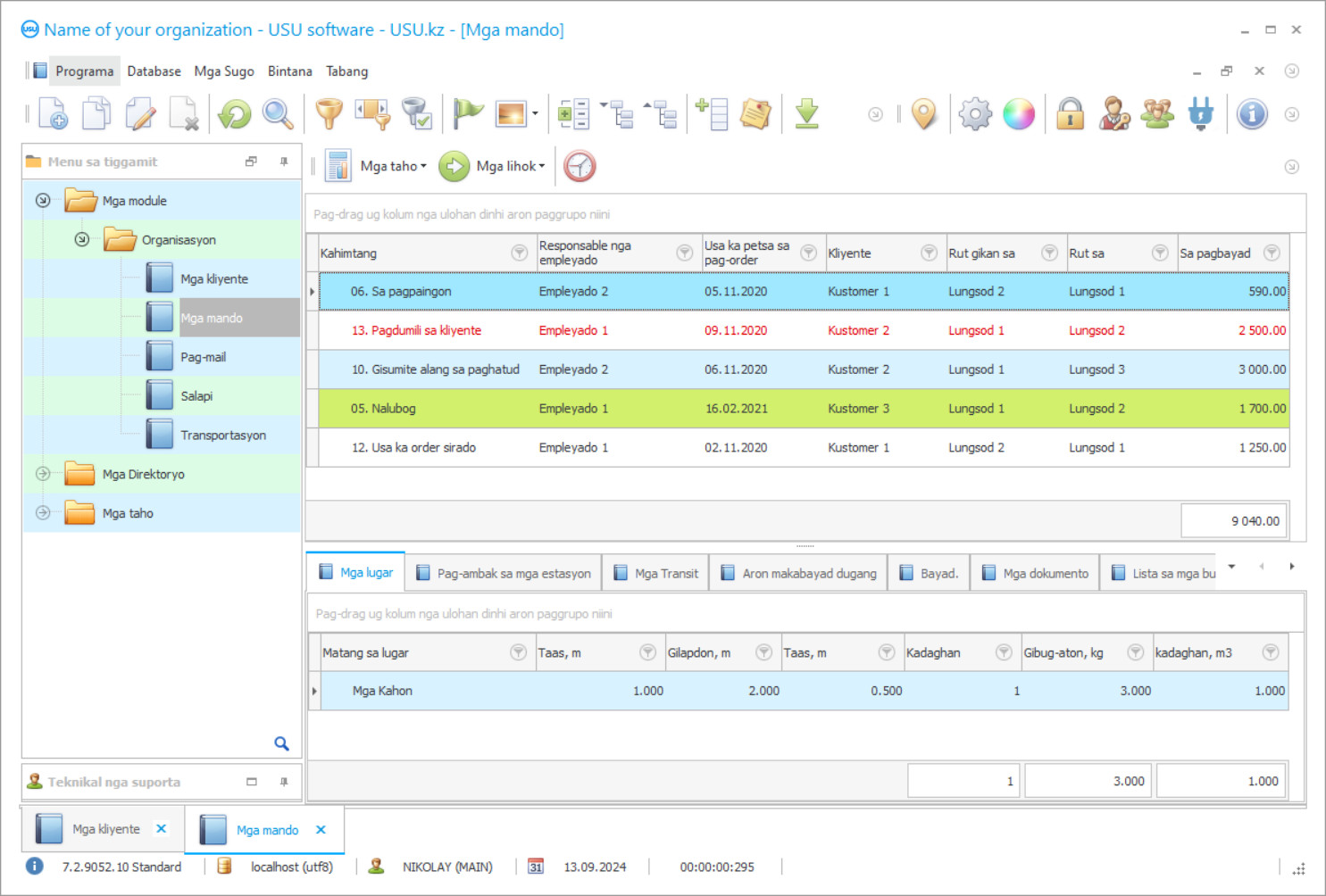 Ang datos sa gihimo nga ulat magpakita sa mga kliyente nga wala pa hingpit mabayran ang ilang bayranan alang sa mga serbisyo. Ang mga kapanguhaan sa panalapi sa imong kompaniya mapailalom sa regular nga pagribyu sa pagtuki sa kasayuran sa labing mahal nga mga bahin sa negosyo. Ang usa ka piho nga ulat magbuhat datos bahin sa pagpugong sa mga salakyanan sa kompanya, nga makapaminusan sa kantidad sa mga kinahanglan nga papeles. Gigamit ang plano sa pag-apod-apod sa mga butang sa logistics, adunay ka datos sa pagkarga sa kargamento matag adlaw nga adunay pagpugong sa matag makina.