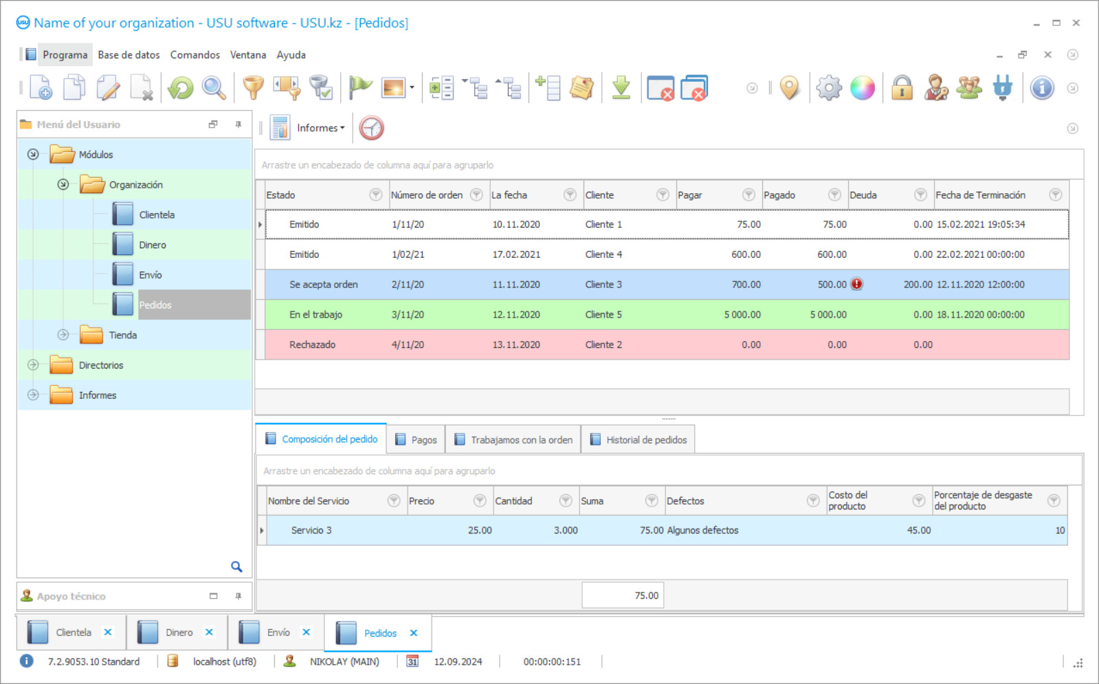 El programa CRM integrado de limpieza en seco garantiza una gestión eficaz de las relaciones con los clientes de la limpieza en seco. La base de datos almacena contactos, una lista completa de todas las llamadas (tanto de clientes habituales como de una sola vez), así como los resultados de los comentarios (reclamos, quejas, agradecimiento). El programa controla el tiempo del trabajo, enviando un mensaje SMS automático al cliente si el pedido está listo, demoras en procesarlo en motivos objetivos, aparición de nuevos servicios, descuentos. La contabilidad proporciona a la administración información confiable sobre las liquidaciones diarias planificadas con proveedores y recibos de pagos de consumidores, el movimiento de dinero en cuentas y cajas, cuentas por cobrar corrientes, así como el costo de los servicios. El programa de limpieza en seco desarrollado por USU-Soft está hecho a un alto nivel profesional y cumple con los estándares modernos. El programa de contabilidad administrativa proporciona la automatización de los procesos comerciales y el trabajo contable en la empresa. El programa se configura de forma individual, teniendo en cuenta las características específicas de las actividades de la empresa, así como todos los requisitos reglamentarios de la organización de las actividades de producción de tintorería. Las capacidades del programa USU-Soft le permiten combinar cualquier número de sucursales y divisiones remotas en un solo espacio de información.