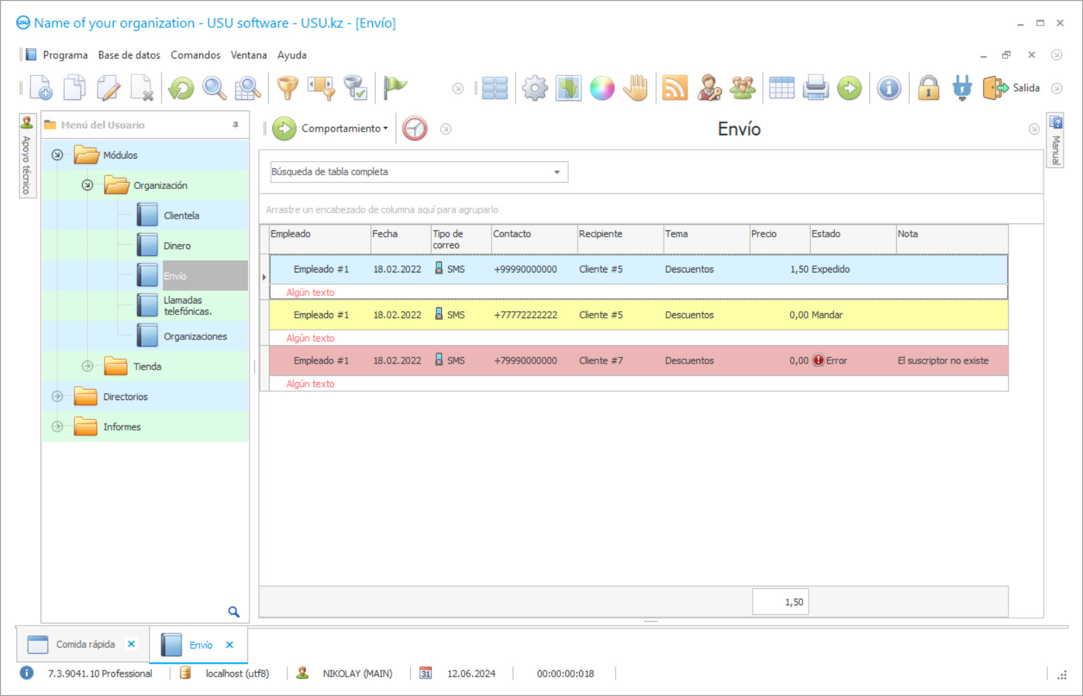 El programa tiene plantillas de documentos integradas para la formación rápida de documentación, teniendo en cuenta la entrada e importación automática de datos de diversas fuentes. Usted y sus empleados pueden desarrollar su propia base de datos y llevar un registro contable para los suscriptores, ingresando información precisa sobre números de contacto e información de correo electrónico, clasificando por género, edad, campo de actividad y otros factores de interés, en ciertos eventos que tienen un efecto productivo. , al enviar mensajes de correo electrónico. Lleva registros por separado para cada aplicación, genera un mensaje de texto de acuerdo con el cliente, analiza la demanda de la base de suscriptores, calcula el costo de los servicios y genera documentación, puedes automatizar sin perder tiempo extra. Al enviar mensajes de correo electrónico, es posible controlar el estado de entrega de la carta. Realice un seguimiento realista de si la carta fue entregada, leída o no leída, en este último caso, el mensaje de correo electrónico se enviará nuevamente para obtener resultados efectivos. En el caso de mailing masivo, no se preocupe, el programa no cometerá un error ni un error tipográfico, todos los procesos se completarán exactamente en el tiempo especificado en el planificador de tareas. Los mensajes de correo electrónico enviados para cada suscriptor se colorearán automáticamente en un color específico para que los empleados puedan ver a quién se envió la información, quién está en la cola o quién no está disponible en absoluto. Cuando se trabaja con la distribución de datos de información, se utiliza filtrado, análisis constructivo del trabajo. Nunca se perderá un boletín informativo o una reunión con clientes que utilizan nuestro programa USU automatizado, que también comparará el costo del trabajo con el balance general.