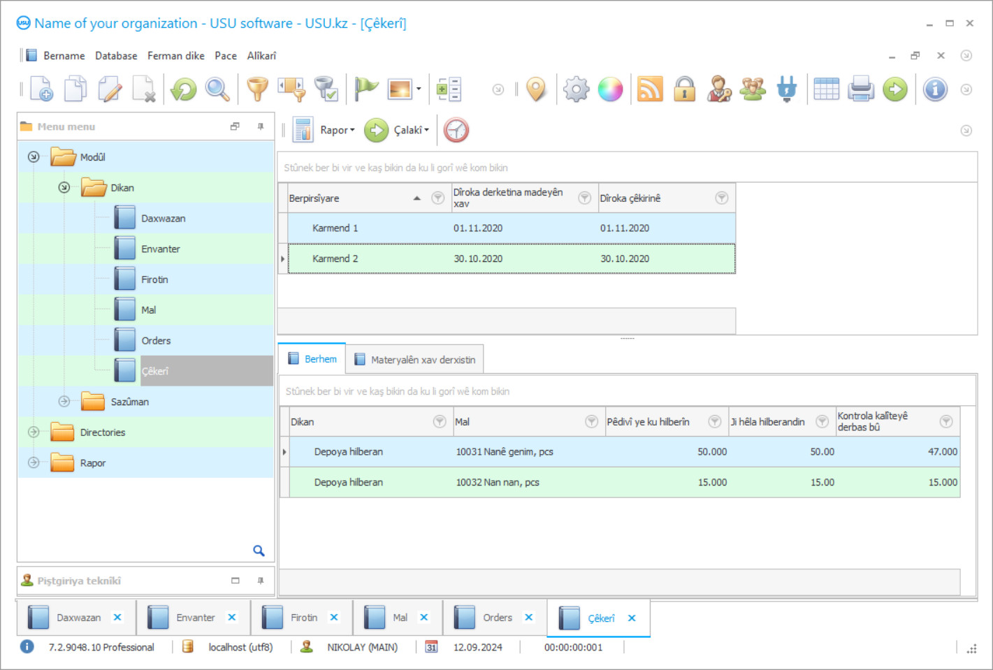 Dîmenek wêneyek nermalava xebitandinê ye. Ji wê hûn dikarin tavilê fêm bikin ka pergalek CRM çawa xuya dike. Me pêwendiyek pencereyê bi piştgirîya sêwirana UX/UI bicîh kiriye. Ev tê vê wateyê ku navrûya bikarhêner li ser bingeha ezmûna bikarhêner a salan e. Her kiryar tam li cîhê ku pêkanîna wê herî hêsan e cîh digire. Bi saya nêzîkatiyek wusa jêhatî, hilberîna xebata we dê herî zêde be. Li ser wêneya piçûk bikirtînin da ku dîmenê bi tevahî mezinahî vekin.
