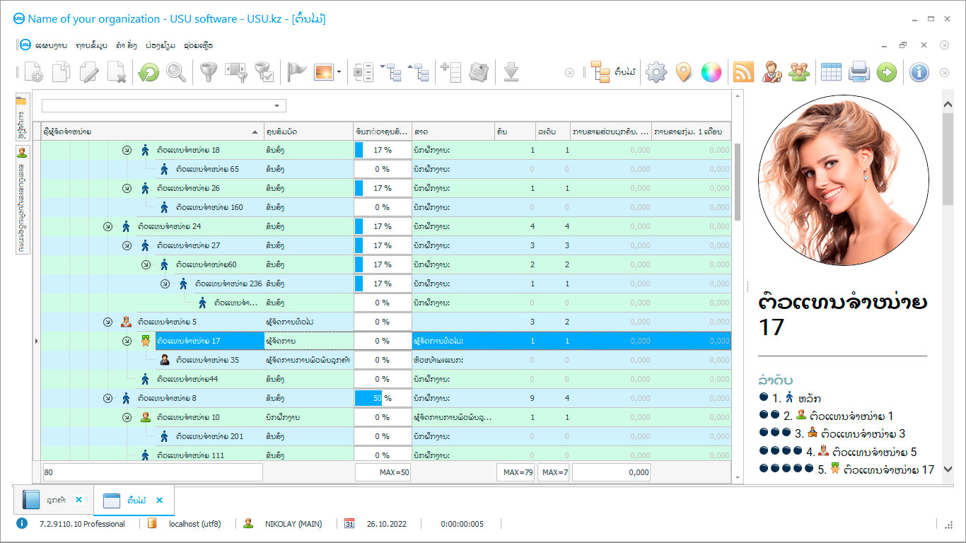 ຄ່າບໍລິການຕ່າງໆແມ່ນ ຄຳ ນຶງເຖິງຕົວຄູນທີ່ເຂົ້າມາ, ອີງຕາມການພິຈາລະນາສ່ວນບຸກຄົນຂອງການຫຼຸດລາຄາແລະໂບນັດ, ອີງຕາມການຄິດໄລ່ຄືນຕາມບັນຊີລາຄາ. ພະນັກງານສາມາດເຂົ້າແລະຮັບຂໍ້ມູນໄດ້ພ້ອມກັນ, ແລກປ່ຽນຜ່ານເຄືອຂ່າຍທ້ອງຖິ່ນ, ຄຳ ນຶງເຖິງ ໂໝດ multiuser. ເມື່ອທ່ານເປີດເອກະສານ ໜຶ່ງ ສະບັບ, ໂປແກຼມການຕະຫຼາດເຄືອຂ່າຍຂັດຂວາງການເຂົ້າຫາສະມາຊິກຂອງທີມອື່ນເພື່ອບໍ່ໃຫ້ມີຂໍ້ຜິດພາດແລະຄວາມສັບສົນ. ມັນເປັນໄປໄດ້ທີ່ຈະໄດ້ຮັບຂໍ້ມູນຫລືເອກະສານເທົ່ານັ້ນທີ່ມີສິດໃນການເຂົ້າເຖິງບາງຢ່າງ, ນີ້ແມ່ນສິ່ງທີ່ ຈຳ ເປັນ ສຳ ລັບການປົກປ້ອງຂໍ້ມູນສ່ວນຕົວຫຼາຍກວ່າເກົ່າ. ເຊີຟເວີສາມາດເກັບຮັກສາຂໍ້ມູນ ຈຳ ນວນບໍ່ ຈຳ ກັດ. ສຳ ເນົາ ສຳ ຮອງຊ່ວຍໃຫ້ເກັບຮັກສາເອກະສານໄວ້ເປັນເວລາບໍ່ ຈຳ ກັດ, ຄວາມ ໜ້າ ເຊື່ອຖືບໍ່ຄົບຖ້ວນ, ແລະຄວາມປອດໄພ. ເຄື່ອງຈັກຊອກຫາສະພາບການໃຫ້ຂໍ້ມູນທີ່ ຈຳ ເປັນ, ນັບເວລານາທີ. ການລວມເອົາສາຂາທີ່ບໍ່ ຈຳ ກັດ ຈຳ ນວນ ໜຶ່ງ, ເມື່ອຫລາຍອົງກອນເຂົ້າຮ່ວມເຄືອຂ່າຍ. ຜູ້ໃຊ້ແຕ່ລະຄົນຖືກມອບ ໝາຍ ໃຫ້ເຂົ້າສູ່ລະບົບສ່ວນບຸກຄົນແລະລະຫັດຜ່ານ. ການປະກອບເອກະສານລາຍງານແລະເອກະສານແມ່ນເຮັດໂດຍອັດຕະໂນມັດໂດຍຊອບແວ. ຮັກສາຖານຂໍ້ມູນ CRM ຂະ ໜາດ ໃຫຍ່, ພ້ອມທັງຮັກສາຂໍ້ມູນທີ່ ຈຳ ເປັນຕ່າງໆໃຫ້ກັບລູກຄ້າ. ການ ຊຳ ລະເງິນສາມາດຍອມຮັບໄດ້ທັງເງິນສົດໃນເວລາທີ່ດ່ານກວດແລະແບບບໍ່ແມ່ນເງິນສົດ, ຜ່ານຕູ້, ກະເປົາອີເລັກໂທຣນິກ, ຜ່ານບັດ ຊຳ ລະຫຼືບັນຊີ.