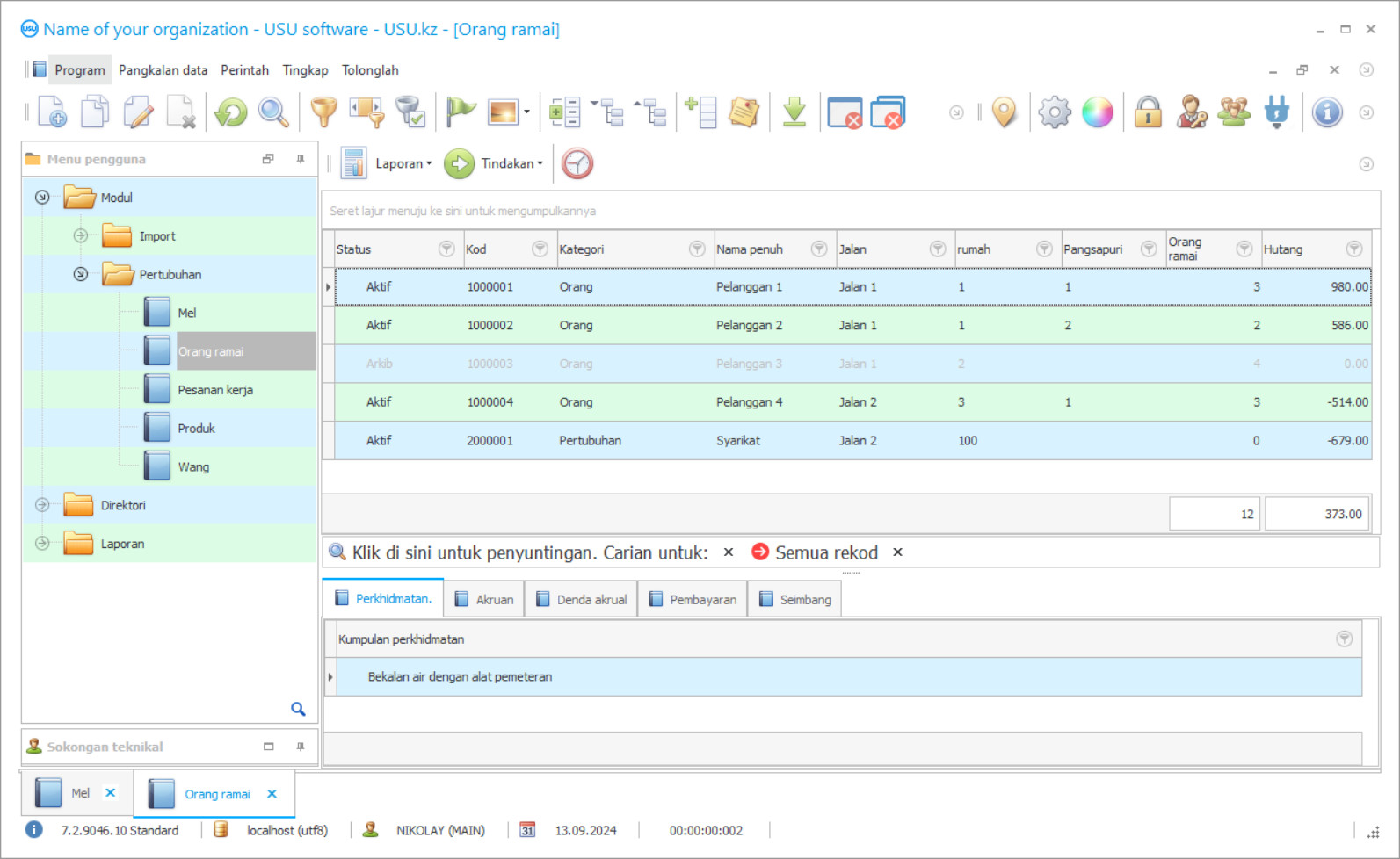 Kualiti dalam proses kerja mesti ada dalam setiap aspek. Sebagai contoh, ketika kita berbicara mengenai organisasi perumahan dan utiliti komunal, bahagian aktiviti seharian berikut mesti automatik dan dioptimumkan untuk mencapai kualiti: pengumpulan dan analisis data, interaksi dengan pelanggan, penjanaan penerimaan dan sumber dan kawalan personel. Mari kita bincangkan setiap aspek ini secara terperinci. Inti kewujudan organisasi seperti penyaluran sumber daya kepada penduduk selalu disertai dengan pengumpulan data yang tepat dan pengiraan indikator yang tepat dari alat pemeteran sesuai dengan tarif tarif dan syarat-syarat lain. Apabila proses ini tidak automatik, maka kita tidak dapat membicarakan kualiti dan ketepatan proses kerja. Interaksi dengan pelanggan adalah sama pentingnya, kerana mereka berkaitan dengan pendapatan organisasi anda. Lagipun, anda melakukan apa yang anda lakukan untuk orang-orang ini, jadi anda perlu menghubungi mereka dan menolong apa sahaja yang mereka perlukan dalam konteks perkhidmatan. Program automasi perakaunan USU-Soft dapat memastikan bahawa anda mempunyai set lengkap maklumat mengenai pelanggan dalam pangkalan data, sehingga dapat menghubungi mereka dengan cara yang mudah dan mempunyai akses ke sejarah interaksi juga.