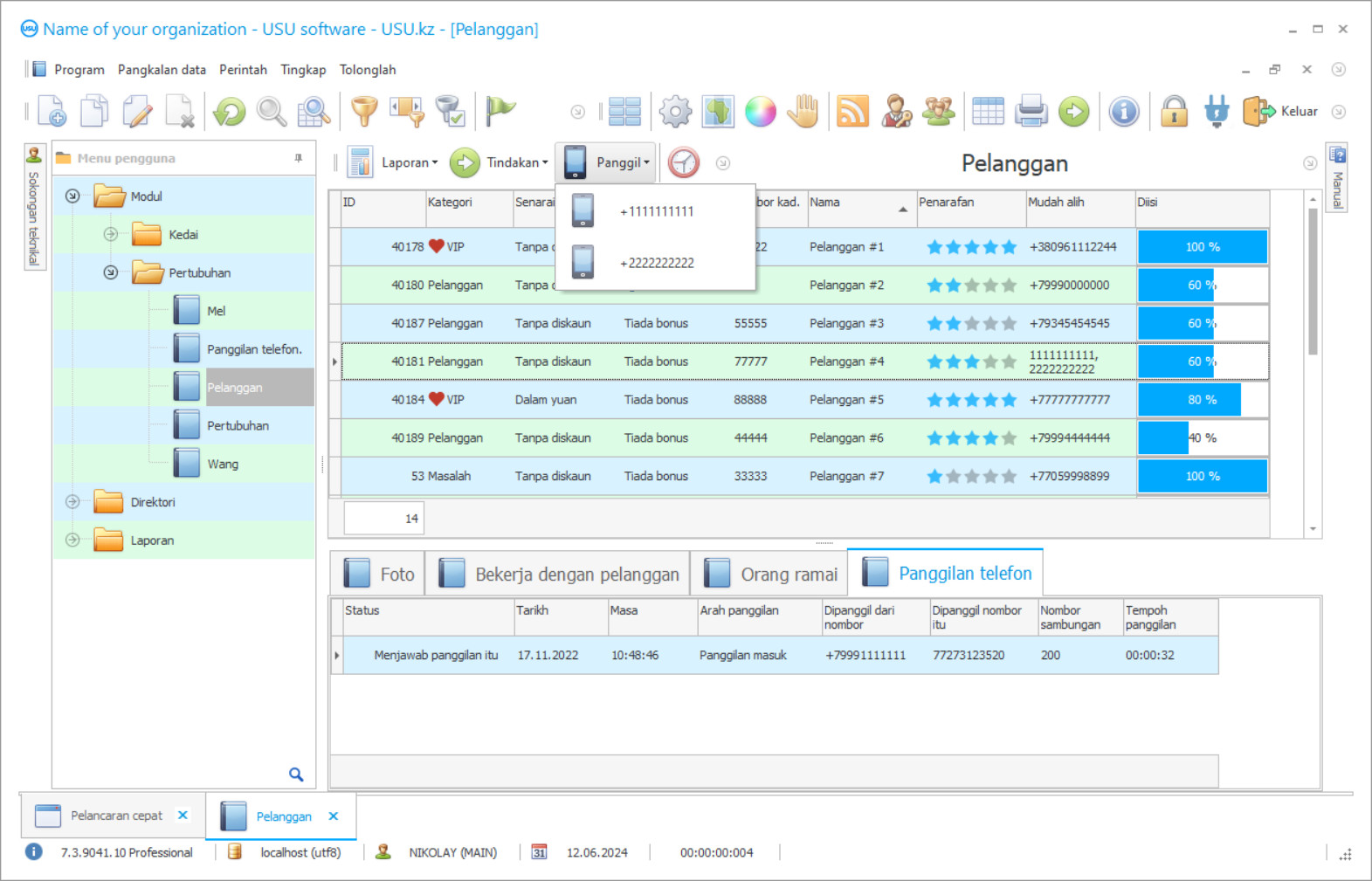 Setelah menyemak maklumat dalam tetingkap pop timbul program perakaunan panggilan, anda boleh menghubungi pelanggan dengan nama, yang akan segera mengaturkannya kepada anda. Penggunaan perisian untuk mendaftarkan panggilan masuk dan keluar akan membawa kerja dengan bakal pelanggan ke tahap yang baharu. Mendapat kepercayaan hanyalah salah satu peringkat.