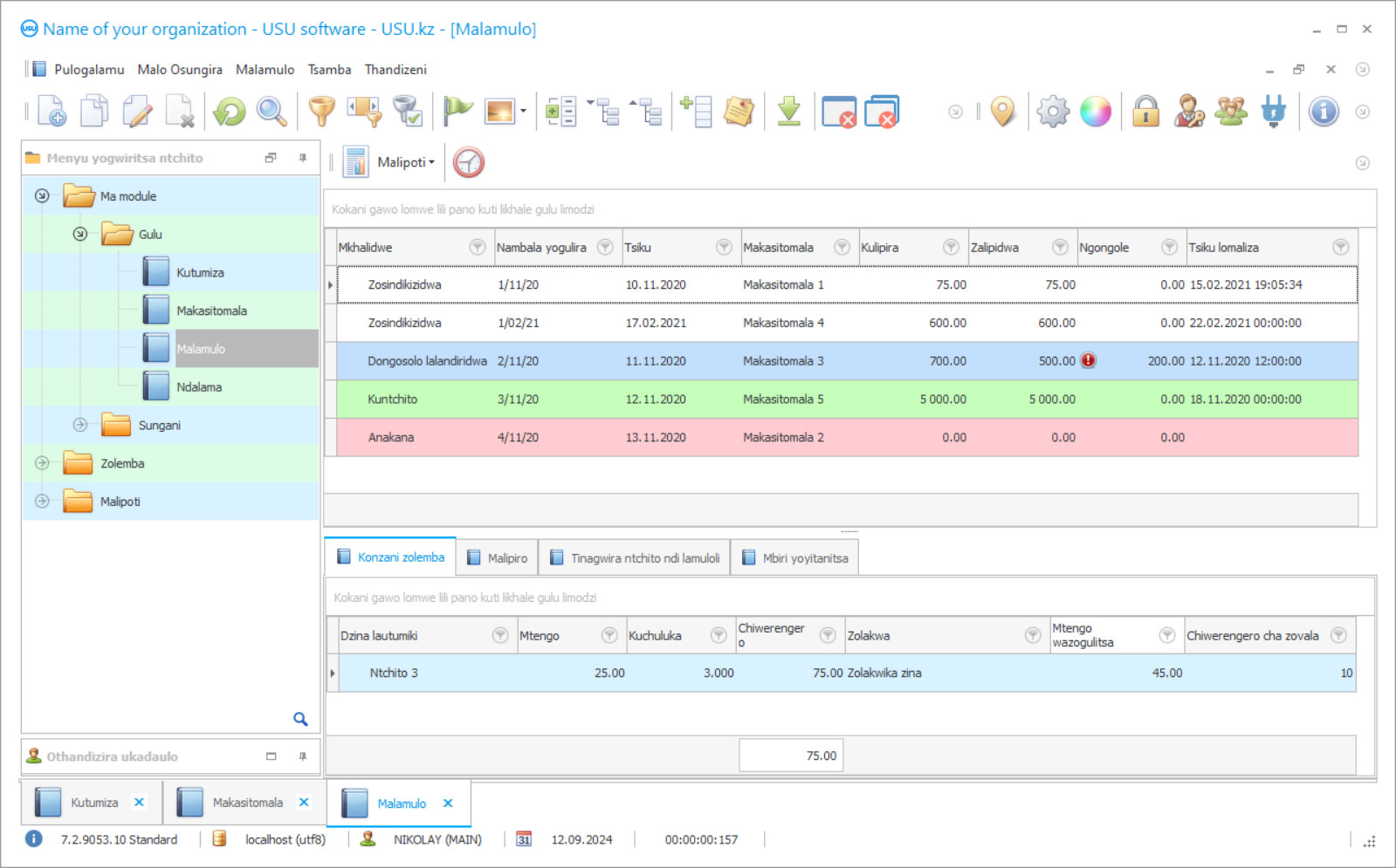 Kukhoza kwa pulogalamuyi kumafikira pakudzaza ndikusindikiza ma risiti, mafomu, ma invoice, ma invoice, ndi zina zambiri kuti tisunge nthawi yamakasitomala ndikukweza magwiridwe antchito onse. Zida zowerengera ndalama zimapatsa oyang'anira kampani chidziwitso chodalirika pamadera omwe alipo mwachangu ndi omwe amapereka katundu ndi ntchito, kayendetsedwe kandalama, kayendetsedwe ka ndalama ndi zolipirira ndi maakaunti olandilidwa. Wokonzekera mkati amathandizira kukhazikitsa magawo ama lipoti ndi ndandanda ya zosunga zobwezeretsera. Gawo lolandila mayankho kuchokera kwa ogula ndikuwunika mtundu wa ntchito ndizophatikizidwa ndi pulogalamuyi.