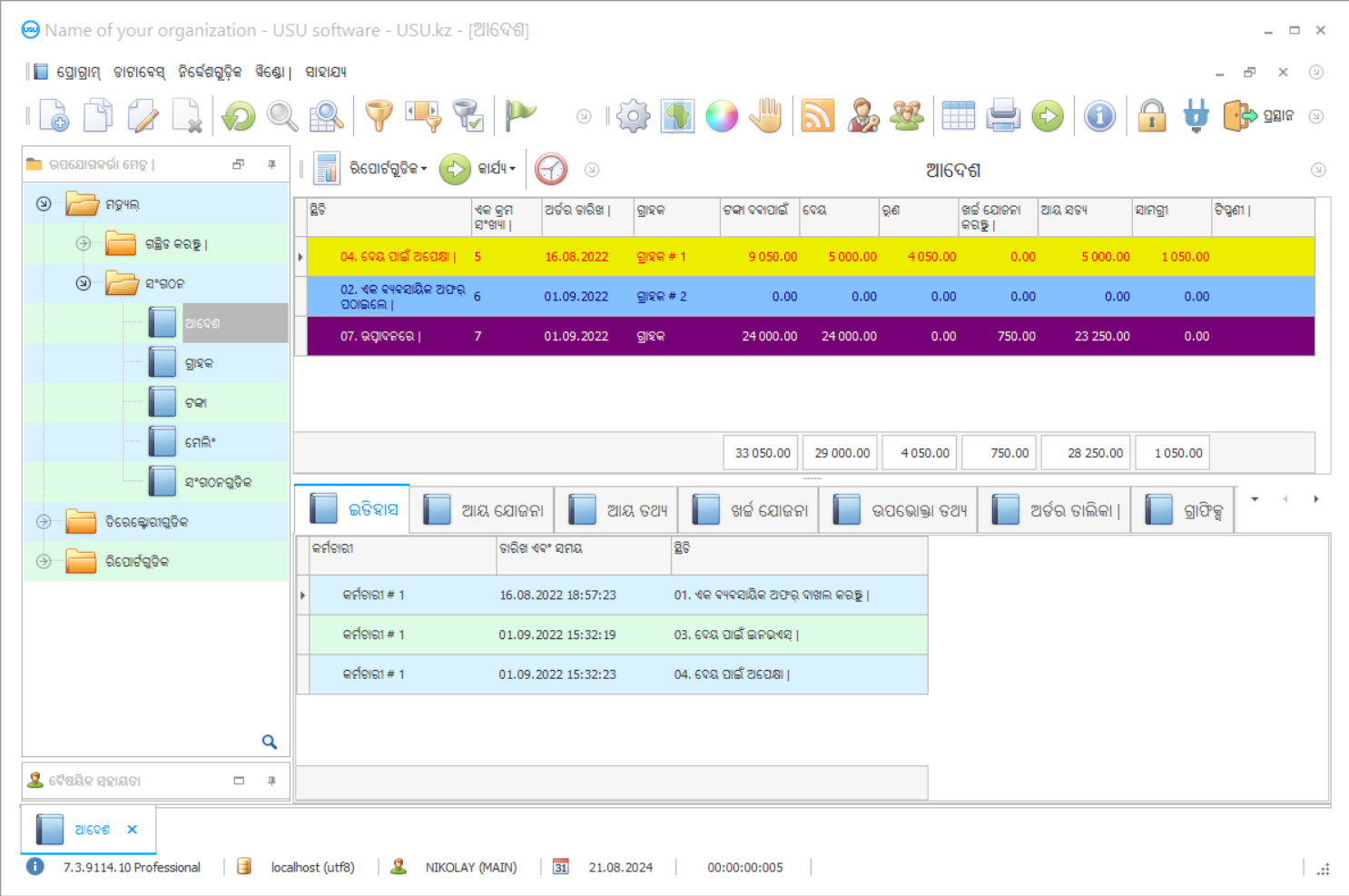 USU ସଫ୍ଟୱେର୍ ପ୍ରୋଗ୍ରାମ କାର୍ଯ୍ୟ ସମୟର କ୍ଷୟକୁ କମ୍ କରିଥାଏ କାରଣ ଆପଣଙ୍କୁ ଆଉ ସୂଚନା ପୁନ - ପ୍ରବେଶ କରିବାକୁ ପଡିବ ନାହିଁ, ବିଭିନ୍ନ ସିଷ୍ଟମରୁ ବାରମ୍ବାର ସୂଚନା ଯାଞ୍ଚ କରନ୍ତୁ | ଏକୀକୃତ ସୂଚନା ପ୍ଲାଟଫର୍ମ ସୃଷ୍ଟି କରି, ଉପଭୋକ୍ତାମାନେ କମ୍ପାନୀର ଅତିରିକ୍ତ ସୁଯୋଗ ଗ୍ରହଣ କରନ୍ତି | ପ୍ରୋଗ୍ରାମଟି ଏକ ବ୍ୟକ୍ତିଗତ ଭିତ୍ତିରେ ବିନ୍ୟାସିତ ହୋଇଛି, ଯାହା ପ୍ରତିପକ୍ଷଙ୍କ ସହିତ କାର୍ଯ୍ୟ କରିବାରେ ବିଭିନ୍ନ ବ features ଶିଷ୍ଟ୍ୟ ଏବଂ ନ୍ୟୁଆନ୍ସକୁ ଧ୍ୟାନ ଦେବା ସମ୍ଭବ କରିଥାଏ | ଗ୍ରାହକଙ୍କ ପାରସ୍ପରିକ କାର୍ଯ୍ୟକୁ ସରଳୀକରଣ ଏବଂ ତ୍ୱରାନ୍ୱିତ କରିବା ଲାଭର ବୃଦ୍ଧି ଏବଂ ଅର୍ଡର ସଂଖ୍ୟା ଉପରେ ଏକ ସକରାତ୍ମକ ପ୍ରଭାବ ପକାଇଥାଏ | ସାମ୍ପ୍ରତିକ ଏକଜେକ୍ୟୁଶନ୍ ମୋଡ୍ ରେ ଟ୍ରାକ୍ ହୋଇଥିବା ସମସ୍ତ ଅର୍ଡର, ଏହା ପଞ୍ଜୀକରଣ, ପେମେଣ୍ଟ, କିମ୍ବା ପୂର୍ବରୁ ପ୍ରସ୍ତୁତ ଇତ୍ୟାଦି ଇତ୍ୟାଦିରେ ଅଛି, ପ୍ରୋଗ୍ରାମ ନୂତନ ପ୍ରୟୋଗଗୁଡ଼ିକୁ ବିଶ୍ଳେଷଣ କରେ, ଡାଟାବେସରେ ଉପଲବ୍ଧ ମୂଲ୍ୟ ତାଲିକା ଉପରେ ଆଧାର କରି ମୂଲ୍ୟ ଗଣନା କରେ | ପ୍ରୋଗ୍ରାମ ବିନ୍ୟାସକରଣ ନିୟାମକ ଡକ୍ୟୁମେଣ୍ଟ ପୂରଣ କରି କର୍ମଚାରୀମାନଙ୍କୁ କାର୍ଯ୍ୟ ସମୟକୁ ଯଥେଷ୍ଟ ସଞ୍ଚୟ କରେ | ସଂକ୍ଷିପ୍ତ ଇଣ୍ଟରଫେସ୍ ଡିଜାଇନ୍, ଅନାବଶ୍ୟକ କାର୍ଯ୍ୟ ବିନା, ଦୃ performance କାର୍ଯ୍ୟକଳାପରେ ହସ୍ତକ୍ଷେପ କରେ ନାହିଁ, ସାମଗ୍ରିକ କାର୍ଯ୍ୟଦକ୍ଷତାକୁ ତ୍ୱରାନ୍ୱିତ କରେ | ବିଭିନ୍ନ ରିପୋର୍ଟିଂ ସାହାଯ୍ୟ ଯେକ any ଣସି ସୂଚକକୁ ପରସ୍ପର ସହିତ ତୁଳନା କରି ଗତିଶୀଳତା ପ୍ରଦର୍ଶନ କରି ମୂଲ୍ୟାଙ୍କନ କରେ | ପ୍ରୋଗ୍ରାମଟି ଯନ୍ତ୍ରପାତି ପାଇଁ ସଂପୂର୍ଣ୍ଣ ଭାବେ ଅନାବଶ୍ୟକ, କମ୍ପାନୀର ବାଲାନ୍ସ ସିଟ୍ କମ୍ପ୍ୟୁଟରଗୁଡ଼ିକ ଯଥେଷ୍ଟ | ମେନୁ ଭାଷା ଅନୁବାଦ କରି ସଫ୍ଟୱେୟାରର ଏକ ଆନ୍ତର୍ଜାତୀୟ ସଂସ୍କରଣ ସୃଷ୍ଟି କରି ଆମେ ସମଗ୍ର ବିଶ୍ୱରେ ବ୍ୟବସାୟକୁ ସ୍ୱୟଂଚାଳିତ କରୁ | ଉପଭୋକ୍ତାମାନେ ପୃଥକ ଲଗ୍ଇନ୍ ଗ୍ରହଣ କରନ୍ତି ଏବଂ ଆକାଉଣ୍ଟ୍ ପାସୱାର୍ଡରେ ଲଗ୍ କରନ୍ତି, ଏହା ଭିତରେ, କେବଳ ସୂଚନା ଦୃଶ୍ୟମାନ ହୁଏ, ଯାହାର ପ୍ରବେଶ ସ୍ଥିତି ଉପରେ ନିର୍ଭର କରେ |