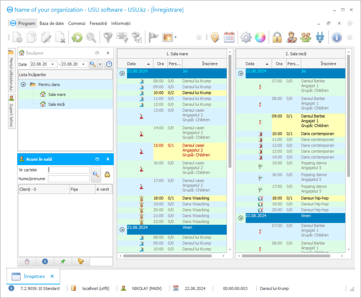 Nu uitați de sistemele de loialitate. Școala de dans poate folosi certificate, abonamente, carduri de club. Dansul devine mult mai ușor. Informațiile analitice și statistice sunt afișate rapid pentru fiecare poziție. Conform recenziilor, cel mai important aspect al programului este corectitudinea maximă a tabelului de personal. În același timp, configurația ia în considerare multe criterii, verifică automat programele de lucru ale cadrelor didactice, încearcă să țină cont de dorințele individuale ale clientului etc.