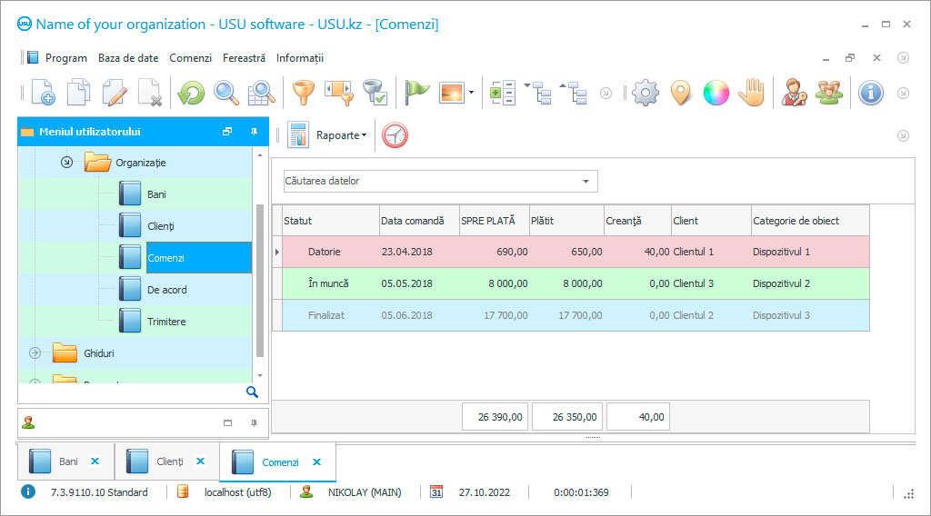 Programul Excel este adesea folosit de companii pentru a efectua numărarea într-un editor de foi de calcul, dar această gestionare a afacerilor nu este întotdeauna convenabilă și, în timp, devine necesară utilizarea unei întrețineri mai avansate. După implementarea unui program special creat pentru această operațiune a scopului centrului de servicii, veți observa cât de ușor și plăcut a devenit exercitarea controlului asupra întreprinderii. Veți avea ocazia să urmăriți executarea comenzii în orice etapă, precum și să înregistrați datele, acțiunile și persoanele responsabile pentru acestea. Ca urmare, întregul centru de service este în mâinile dvs. și, în eventualitatea unor neconcordanțe de orice fel, puteți apela oricând la program pentru a plasa comenzi ale centrului de service și pentru a stabili în ce etapă și de către cine a fost făcută greșeala .