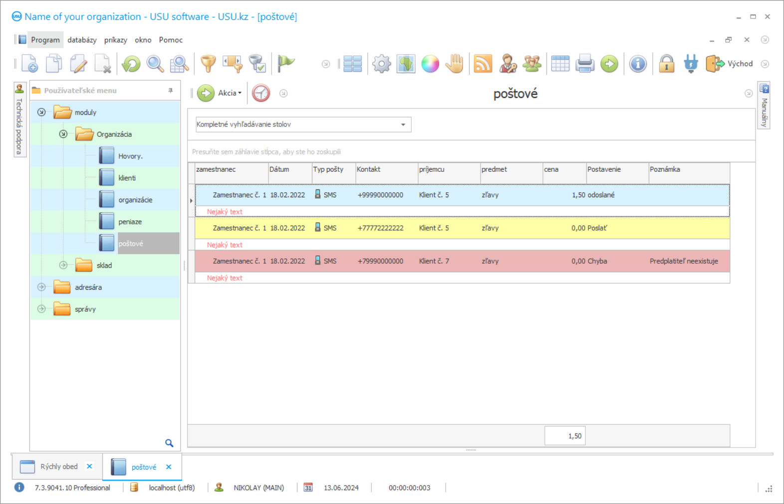 Snímka obrazovky je fotografia spusteného softvéru. Z toho môžete okamžite pochopiť, ako CRM systém vyzerá. Implementovali sme okenné rozhranie s podporou dizajnu UX/UI. To znamená, že používateľské rozhranie je založené na dlhoročných používateľských skúsenostiach. Každá akcia je umiestnená presne tam, kde je najvhodnejšie ju vykonať. Vďaka takémuto kompetentnému prístupu bude vaša produktivita práce maximálna. Kliknutím na malý obrázok otvoríte snímku obrazovky v plnej veľkosti.