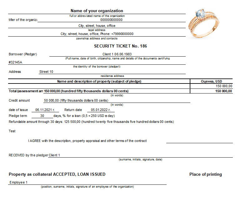 Program Instruction for Microfinance Organization. Working with loans. Security deposit printout
