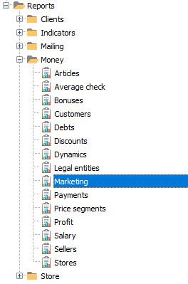 Also in this report you can see the amount of money a customer bought from you, so that you can immediately assess which way of attracting customers leads to you those who leave the most money. You can generate such a report in the section "Reports - Money - Marketing":