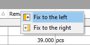 But if I want to fix it there, then I need to right-click on the Remains, then select the item "Fix to the left".