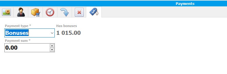 If you have any kind of bonus system in your store, you can select payment by bonuses as a payment method in the program. You can find out if a client has bonuses from the client's card and from the bonus system that works in your store.