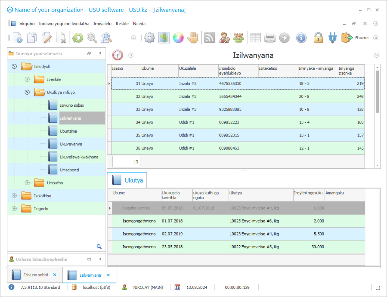 Okwesibini, ulawulo lwefama kwi-USU Software lukubiza kakhulu kunokuseta ezinye iinkqubo ze-analog, kuba le yokugqibela inengqwalaselo emxinwa, kwaye iSoftware yeUSU sisixhobo sendalo yonke yokwenza izinto ezahlukeneyo zomsebenzi. Ukongeza, ibonelela ngemigaqo efanelekileyo yentsebenziswano kunezinye ii -apps zobalo, ezibonisa ukuhlawulwa kwexesha elinye kufakelo kunye nokusetyenziswa ngokupheleleyo simahla okulandelayo. Ezona zinto ziluncedo ziphambili kwisicelo sethu kukunxibelelana kwayo. Ukulima, ngenxa yemowudi yabasebenzisi abaninzi, kuqhutywa linani elingenamda labantu ngexesha elinye. Ikwahluka ngohlobo olucacileyo nolulula loyilo, nolunabasebenzi abaninzi abangenamava ngokulula. Kwisikrini sayo esiphambili, uya kubona imenyu ephambili, enamacandelo amathathu- 'Iimodyuli', 'Iingxelo', kunye 'neeReferensi'. Eyona nto isetyenziselwa ukubalwa kwemali licandelo 'leeModyuli', apho irekhodi eyahlukileyo elektroniki kwisichazi-magama lenzelwa iyunithi nganye yobalo, ukutya, izilwanyana, iintaka, izixhobo, njl., Ukubonisa yonke idatha kunye neenkqubo ezinxulumene nayo. Ukongeza kulwazi olubhaliweyo, ifoto yento ethathwe ngekhamera yewebhu inokuncanyathiselwa kungeniso ngalunye, oluququzelela ukukhangela kunye nolawulo. Ukugcina ezi ngxelo kukuvumela ukuba wenze ugcino lwangaphakathi kuzo zonke iintlobo zezilwanyana neentaka efama, abathengi, abathengisi kunye nabasebenzi. Iimpawu zeinjini yokukhangela ezifanelekileyo zenza ukuba kube lula ukufumana irekhodi elifunwayo ngemizuzwana. Ukuze imisebenzi emininzi yemihla ngemihla yenziwe ngokuzenzekelayo ngexesha lezinto ezenziwa yifama, kufanelekile ukunikela ingqalelo kube kanye kwaye, ngaphambi kokuqala ukusebenza kufakelo lwenkqubo, gcwalisa icandelo 'leeReferensi' ngokweenkcukacha, Umxholo walo uyilo lweshishini. Olu luluhlu lwezilwanyana, iintaka, izityalo, izixhobo ezizodwa, ukutya, abasebenzi abakulo; Ishedyuli yokondla izilwanyana; iishedyuli zokutshintsha kwabasebenzi; idatha efunekayo yenkampani uqobo; iitemplate zamaxwebhu asetyenziswa kwinkqubo yomsebenzi, njl.njl. Icandelo 'Iingxelo' likwabalulekile ekwenzeni imisebenzi efama, eya kuthi incede ukuvavanya inzuzo yeshishini kunye nokuchaneka kombutho wolawulo kuyo nayiphi na i-engile. Kuyo unokuqhuba uhlalutyo ngayo nayiphi na imeko, ubonise amanani-manani owafunayo, kwaye udibanise ngokuzenzekelayo zonke iingxelo eziyimfuneko kumphathi. Amaxwebhu anxulumene nerhafu kunye nengxelo yemali inokugcwaliswa yi-app ngokuzimeleyo, ngokweshedyuli ebekwe nguwe, kwaye emva koko ithunyelwe kuwe ngeposi.