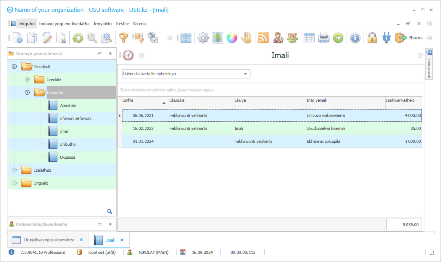 Inkqubo yezemali igcina ingxelo epheleleyo yengeniso, iindleko, inzuzo, kwaye ikuvumela ukuba ubone ulwazi lohlalutyo ngendlela yeengxelo.