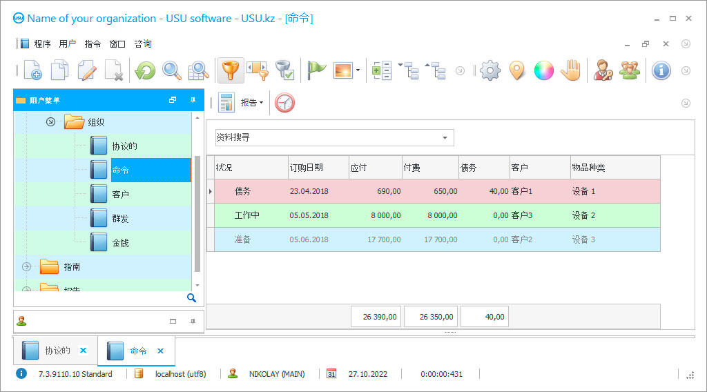 公司通常使用Excel程序在电子表格编辑器中进行计数,但是这种事务管理并不总是很方便,并且随着时间的流逝,有必要使用更高级的维护。在实施专门为此服务中心的操作而创建的程序之后,您将注意到对企业实施控制变得多么轻松愉快。您将有机会在任何阶段跟踪订单的执行,并记录日期,操作和负责人员。结果,整个服务中心就在您手中,如果出现任何类型的不一致,您始终可以使用该程序下达服务中心的订单,并确定在哪个阶段以及由谁犯错。
